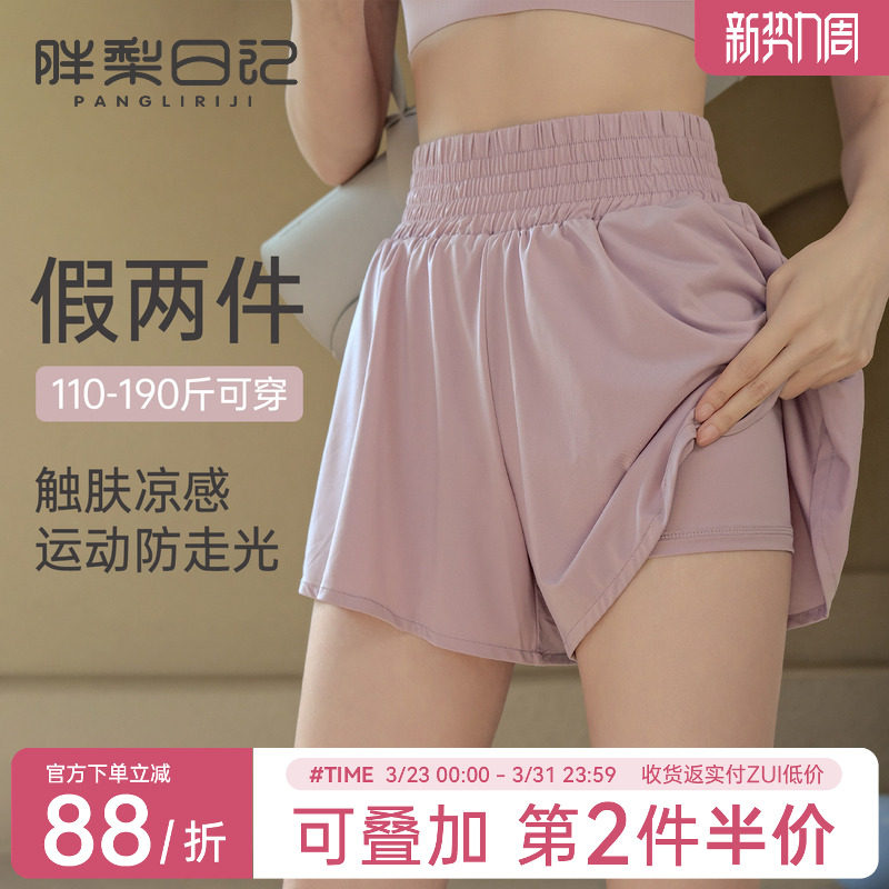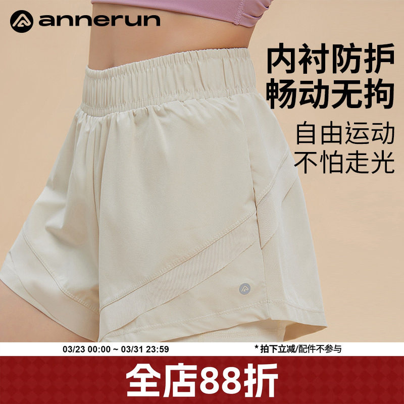 annerun sports shorts women's fake two pieces quick-drying anti-shine high-waisted running three-point pants yoga fitness shorts