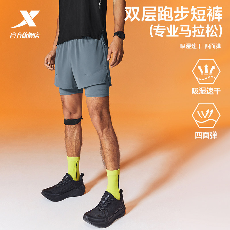 Xtep 2,000 kilometers PRO丨Shorts men's summer new marathon shorts fake two-piece shorts women's running pants