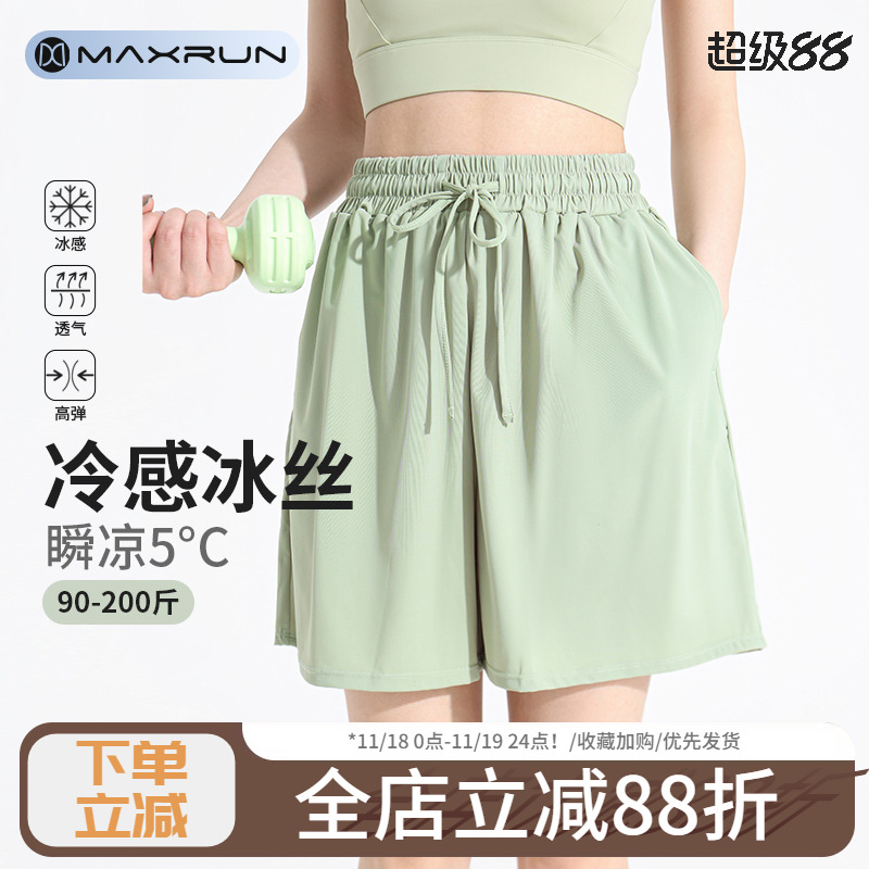 maxrun ice silk sports shorts women's loose plus size quick-drying five-point badminton pants running fitness yoga underpants