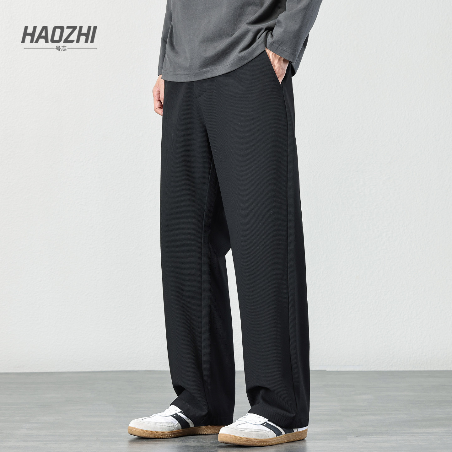 HAOZHI2025 fall and winter loose straight drape trousers, men's commuter versatile pants, wide-leg casual trousers