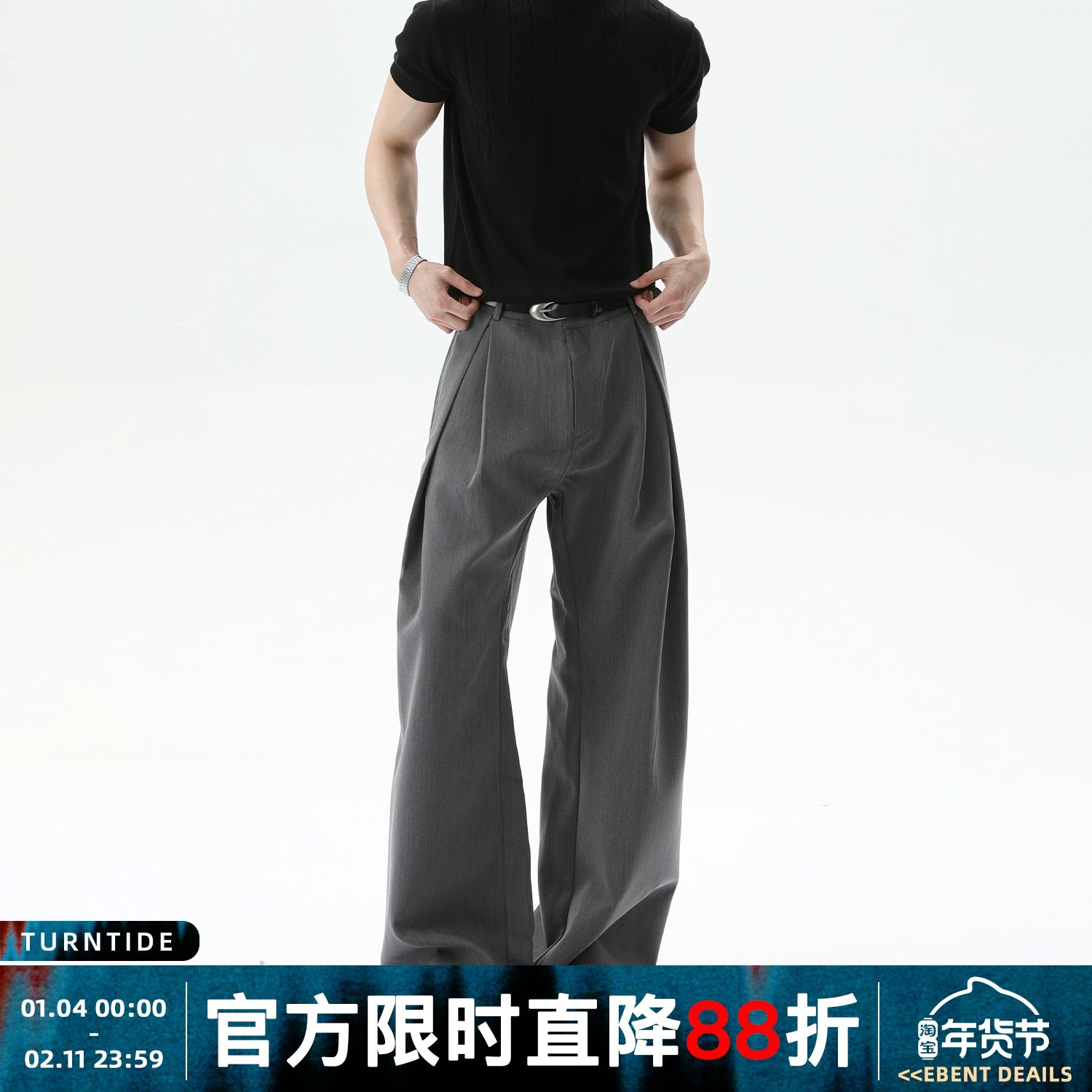 TURNTIDE Three-dimensional A-line silhouette double-pleated scimitar trousers loose commuter cleanfit summer casual trousers