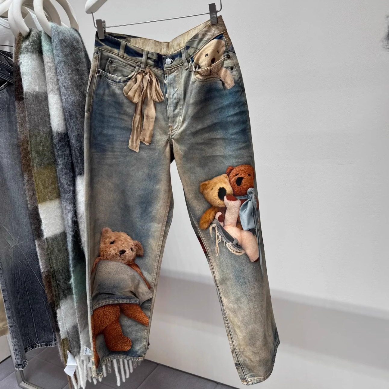 [Year-end king bomb] 1981M teddy bear bow men's 3D printing men's and women's wide-leg jeans trousers