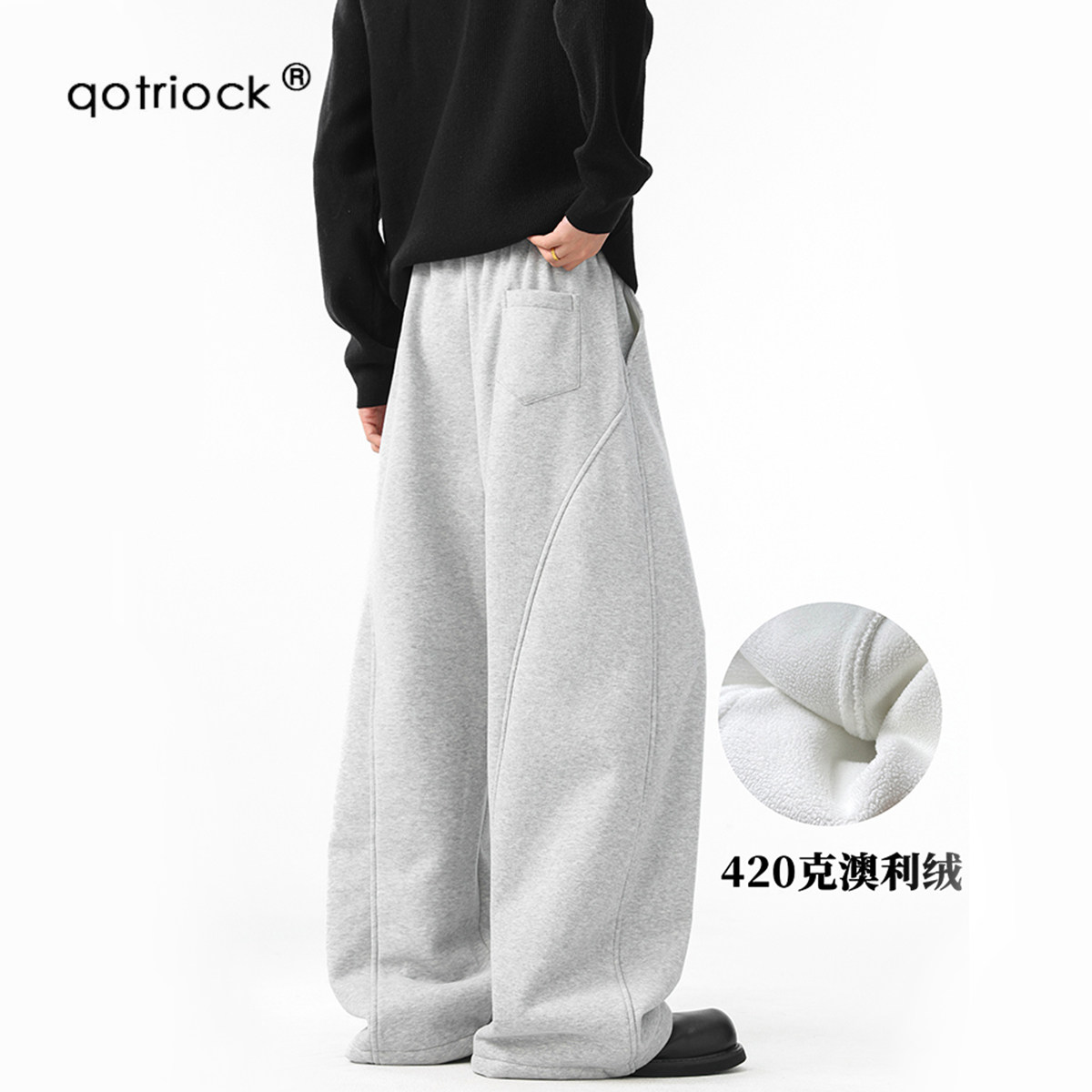 420G heavy fleece thickened scimitar sweatpants for men and women, new loose warm slacks for winter, draped wide-leg pants