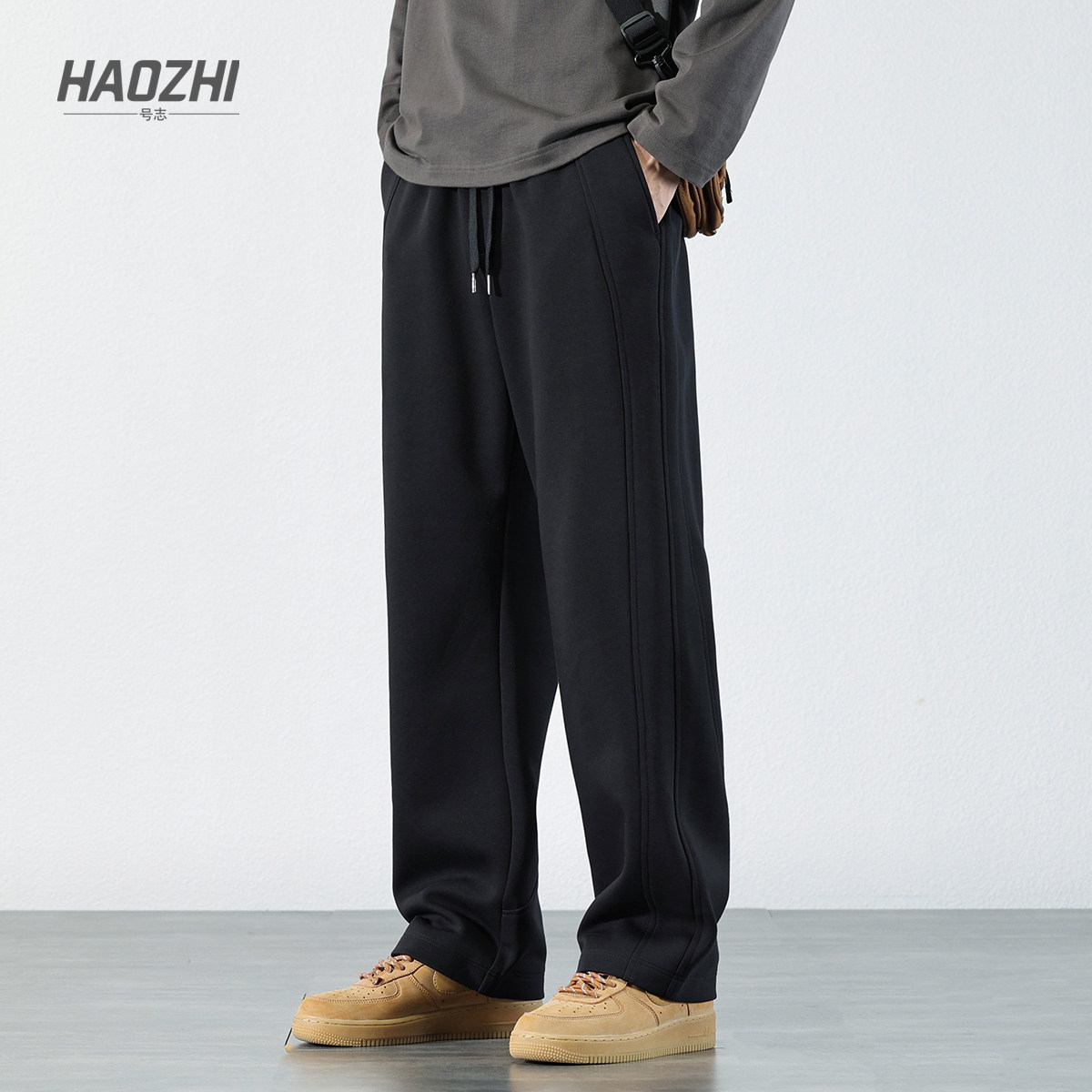 No. HAOZHI straight-leg casual pants men's winter fleece loose plus-size trousers American trend wide-leg sweatpants