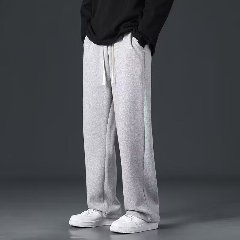 Gray casual trousers, 2025 fall/winter fleece men's American trend, loose straight drape, wide-leg sports sweatpants