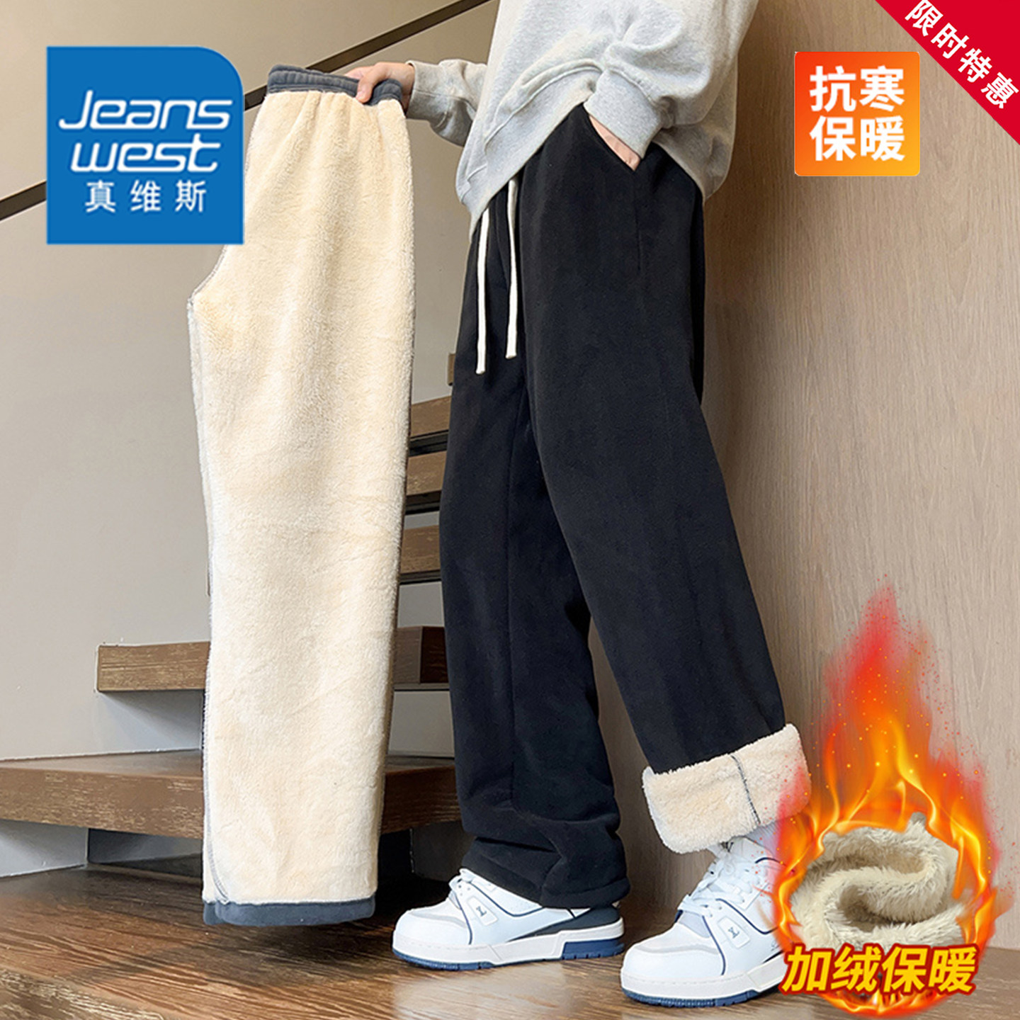 True Weiss American slacks, men's autumn and winter fleece thickened sweatpants, loose and versatile wide-leg sports trousers