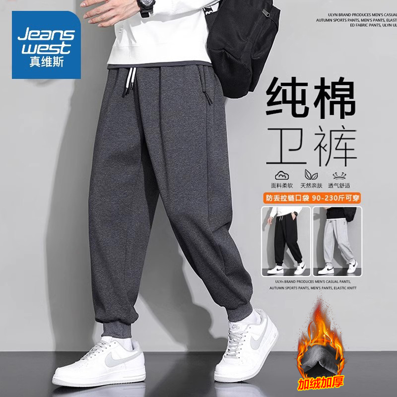 WASSUP American slacks men's summer, autumn and winter loose and versatile fleece thickened foot corset sports drape long pants