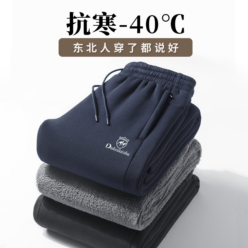 Duke Kangaroo brand lambswool men's fleece thickened sweatpants wear Northeast extra thick slim winter fleece pants