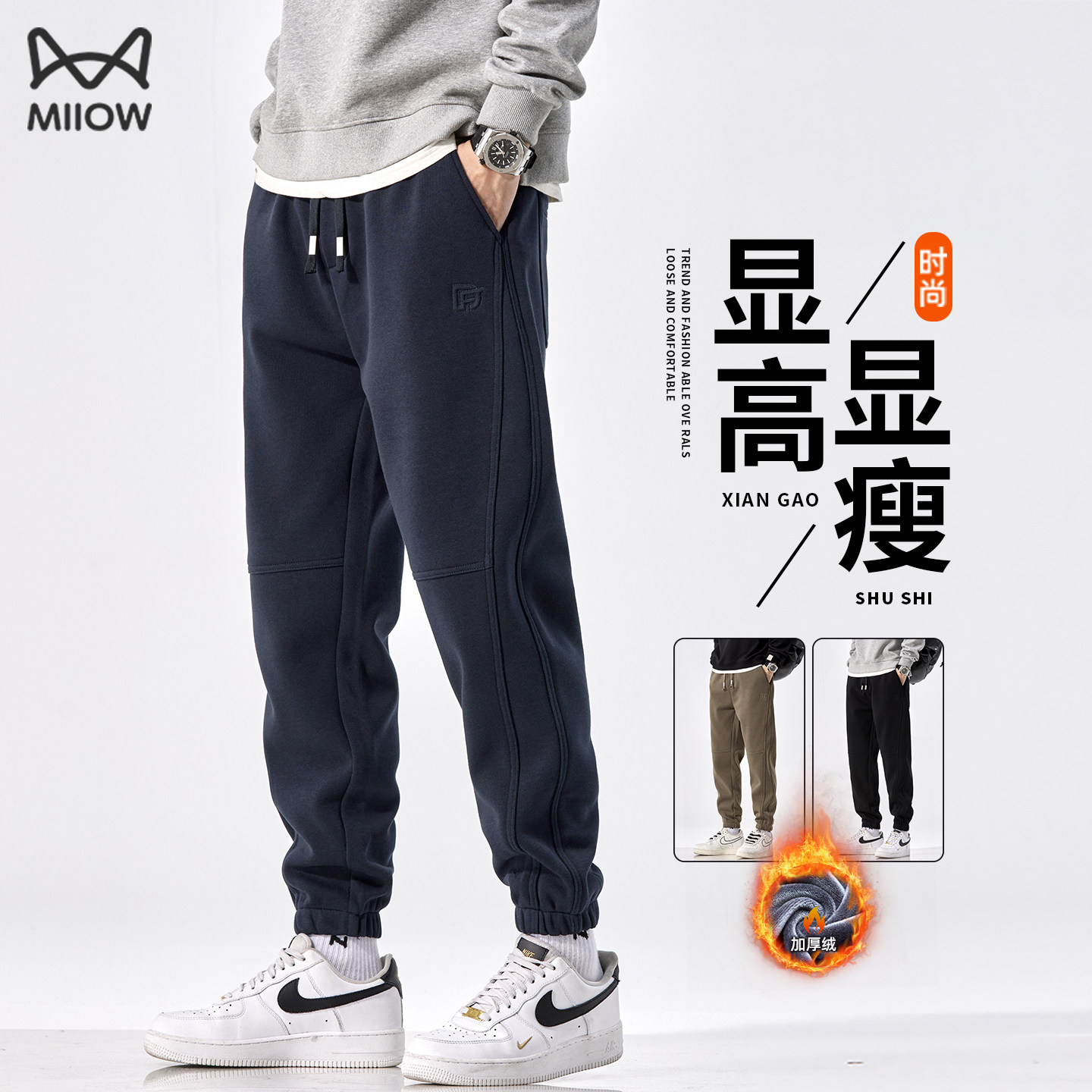 Cat man fleece thickened sweatpants men's autumn and winter loose sweatpants lock in heat and warm American fleece slacks for men