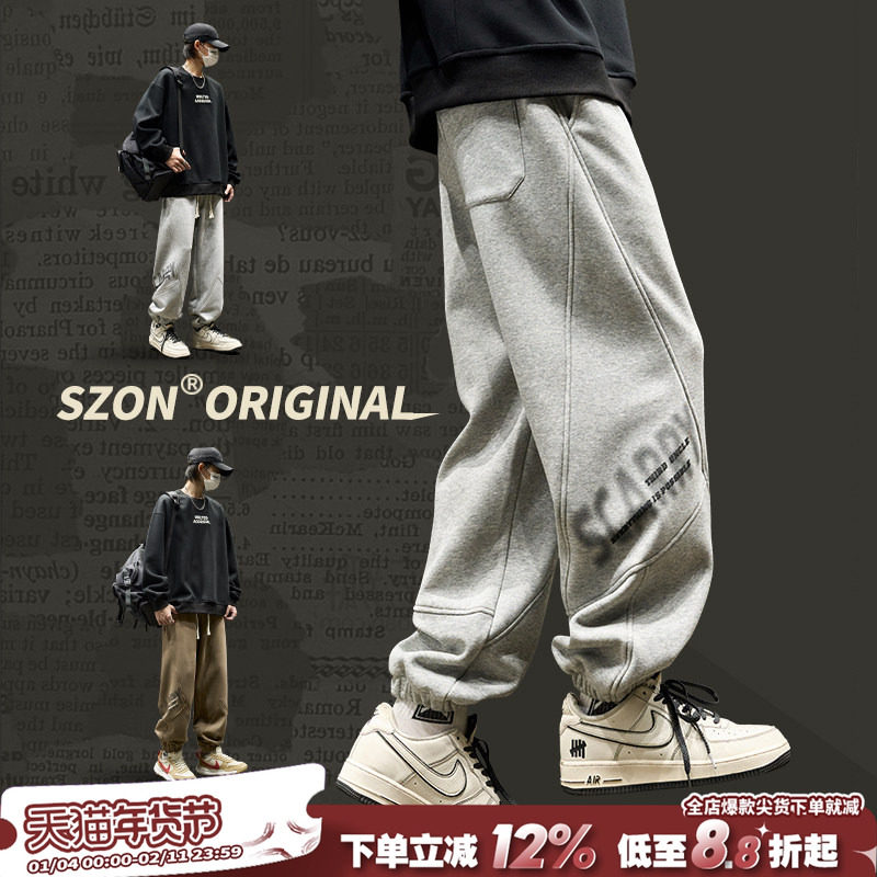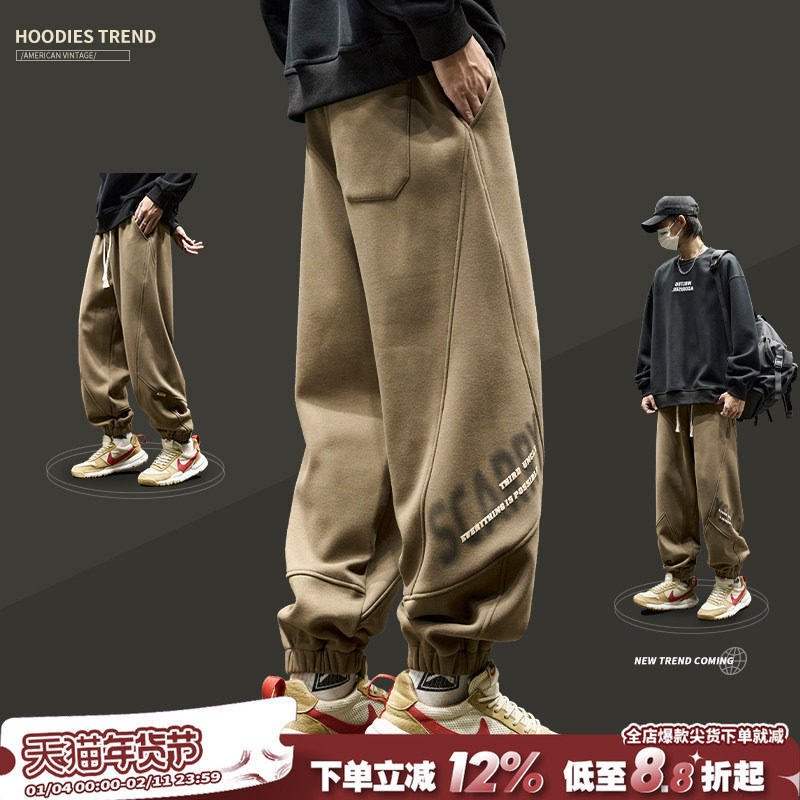 Wang Yibo endorses Zhenwei sweatpants men's autumn and winter fleece thickened casual loose sports trousers for men