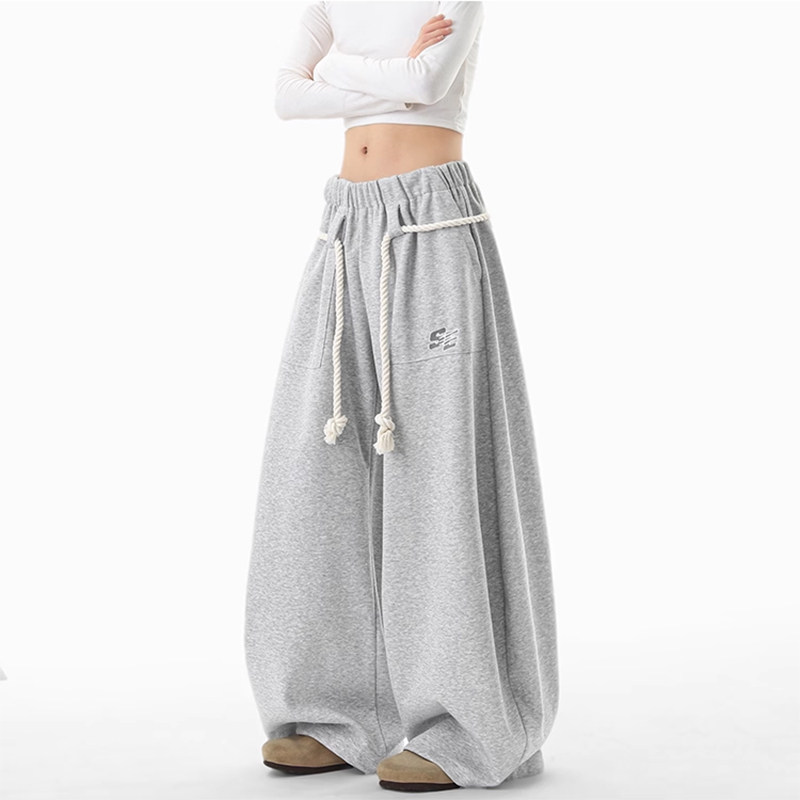 Gray drawstring scimitar sweatpants for women and men autumn retro lazy sweatpants drape versatile casual wide-leg pants