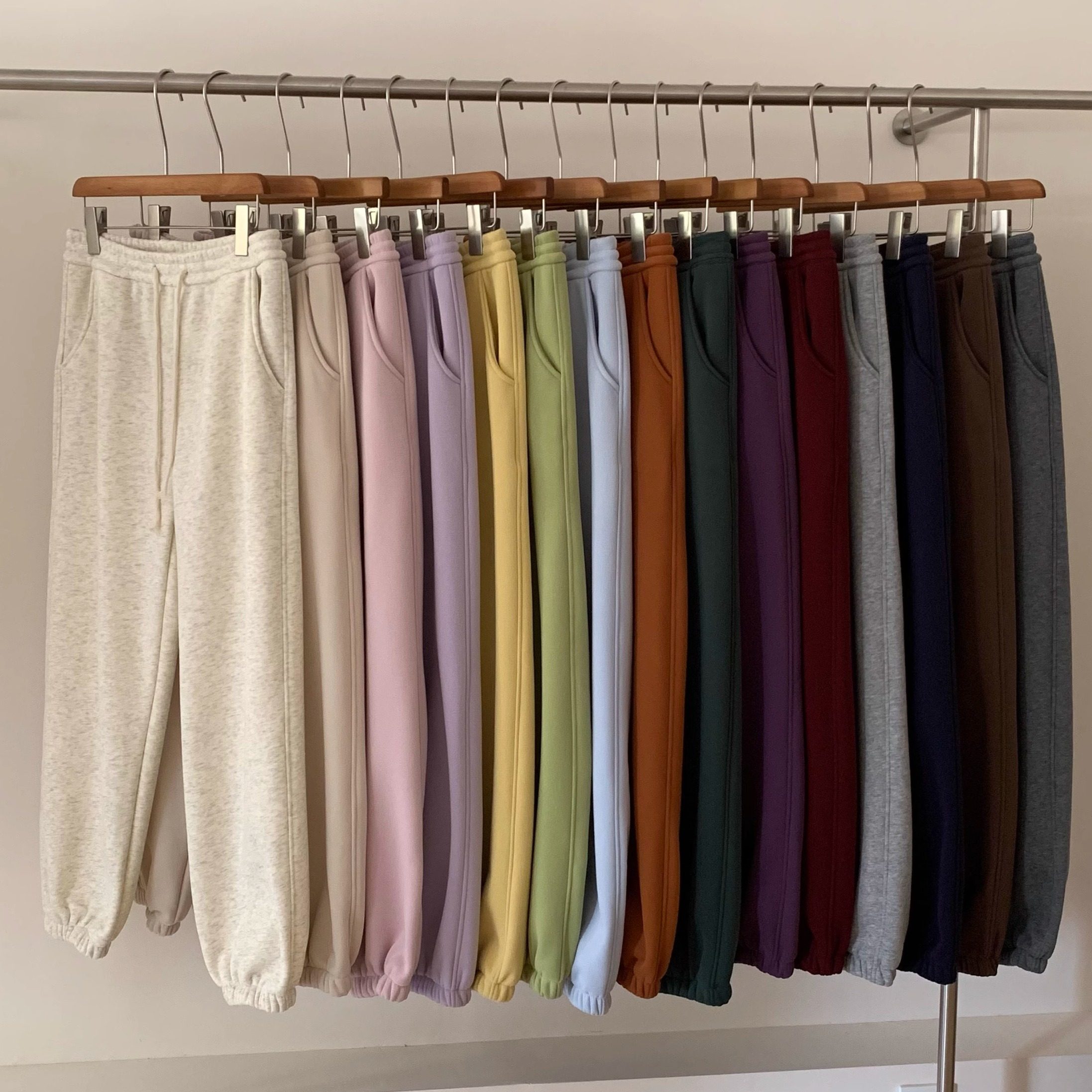 Winter Women's Thickened Small Straight Sweatshirt Pants 100% organic cotton fleece is also a cotton warm high-waisted pocket