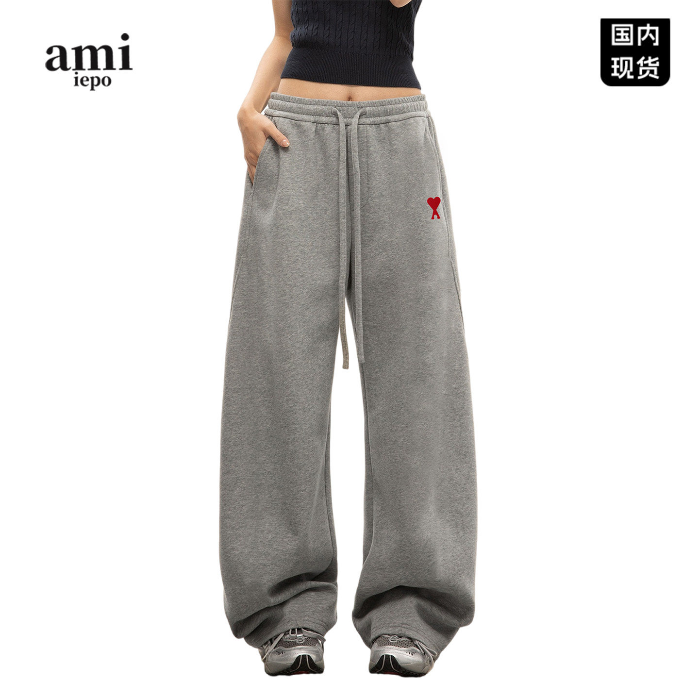 Ami iepo official gray sweatpants for men and women fall and winter new casual trendy brand street mopping pants American trousers