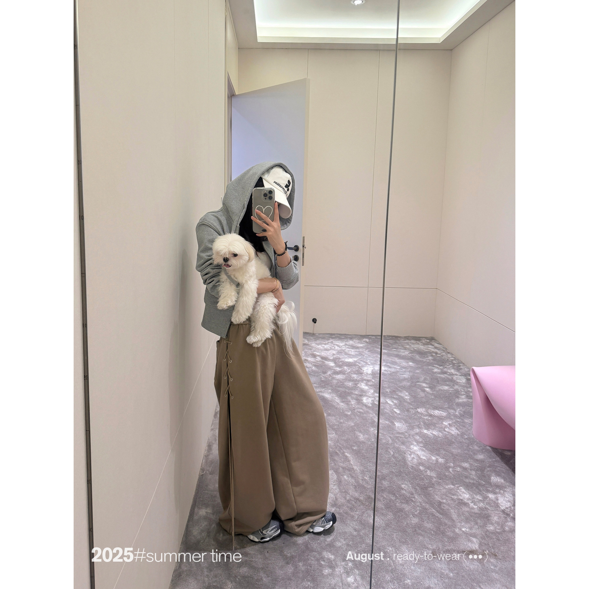[Fans exclusive 50% off clearance] SUNONEONE pressed pleated lace-up loose lazy straight sweatpants women's autumn