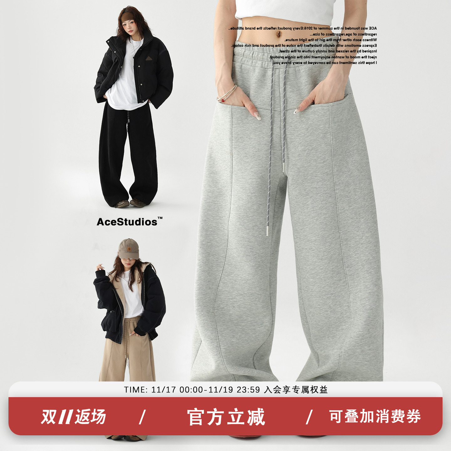 AceStudios American heavy drape scimitar pants design pocket deconstruction loose casual wide-leg sweatpants for women