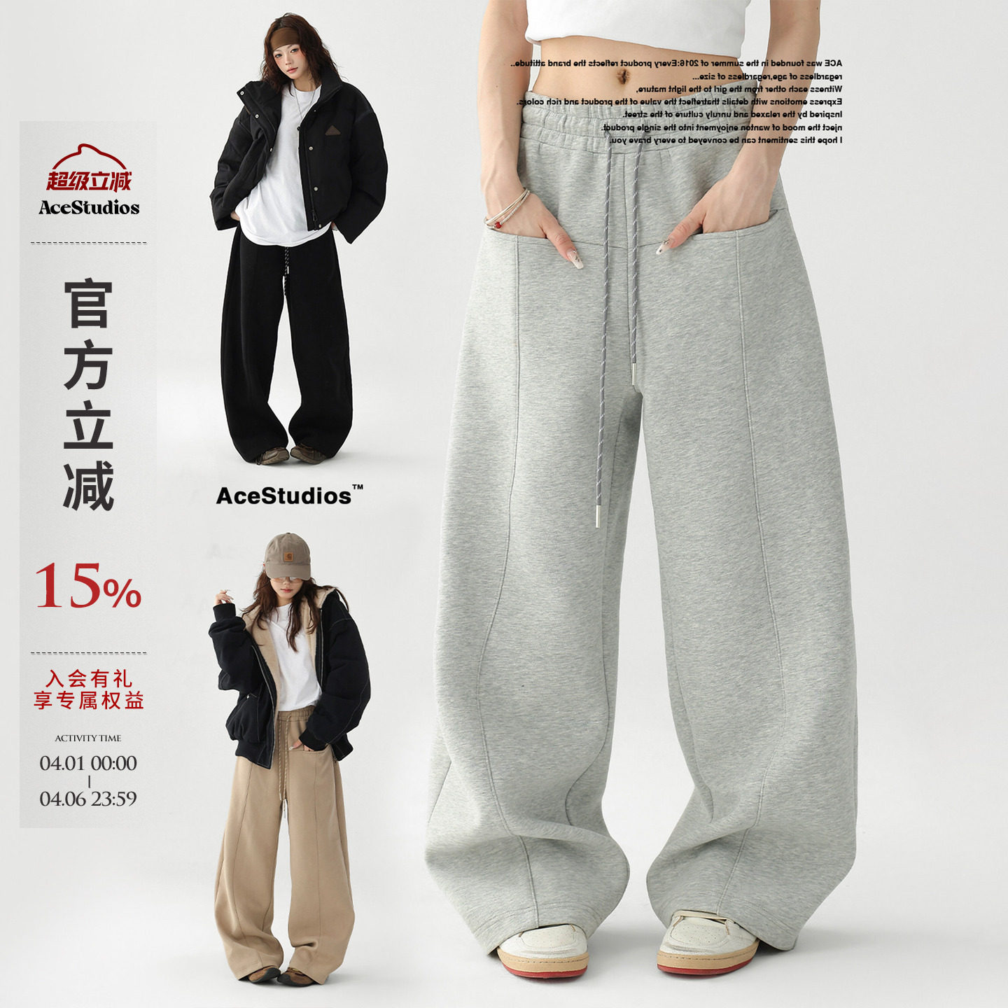 AceStudios American heavy drape scimitar pants design pocket deconstruction loose casual wide-leg sweatpants for women
