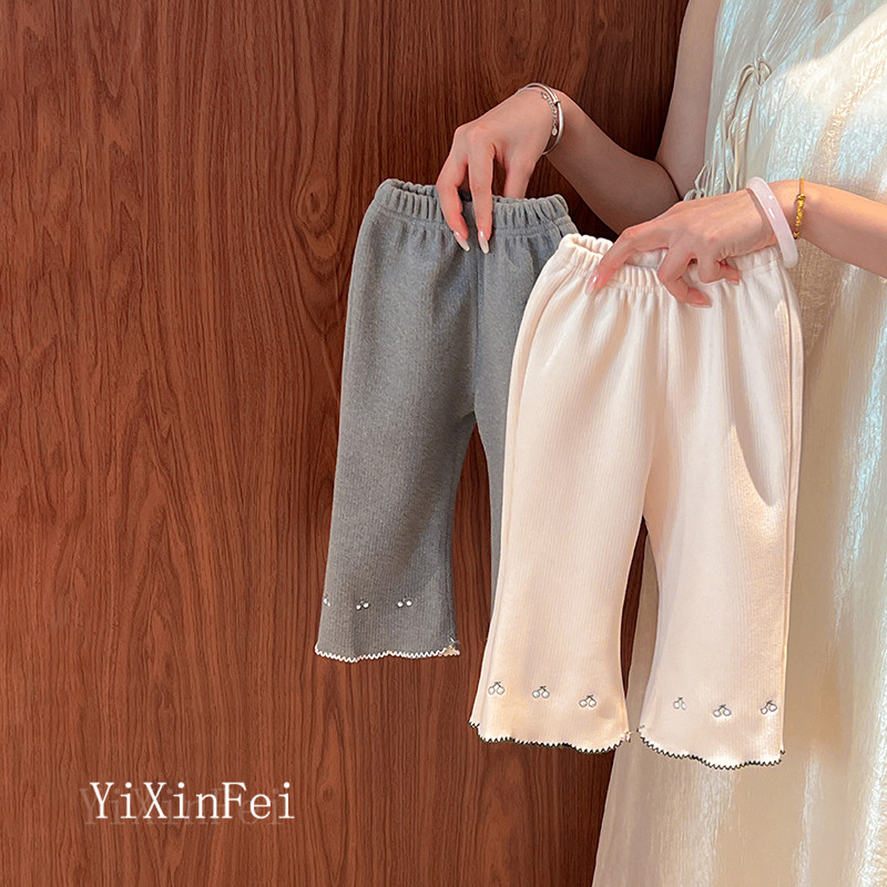 Girls' integrated velvet bell bottoms, foreign autumn and winter trousers, girls' baby winter thickened warm pants, baby children's clothing