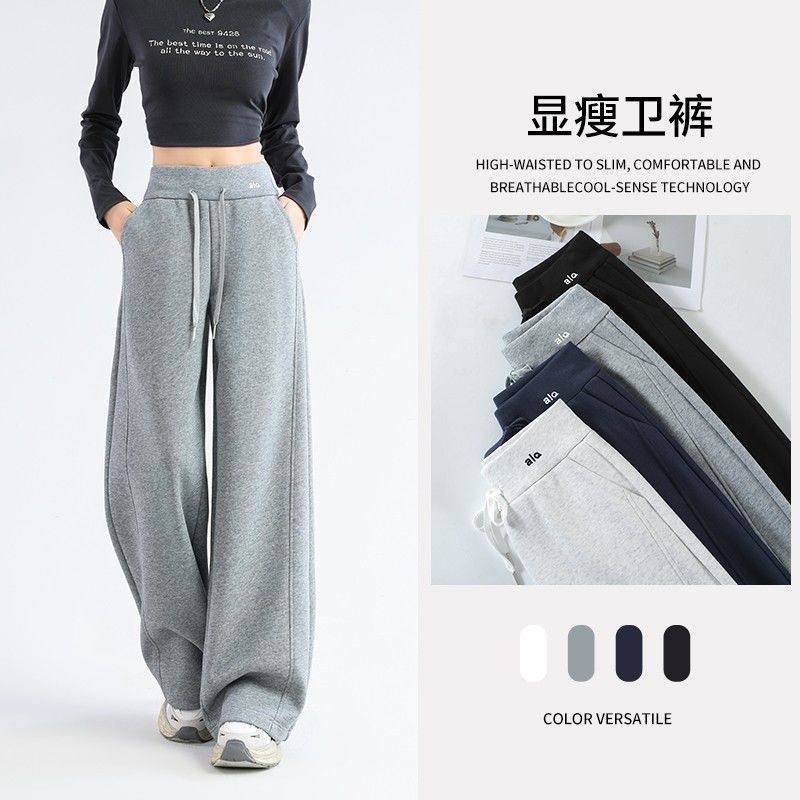 Linhuang white gray American sweatpants women's autumn and winter high-waisted loose casual wide-leg pants small straight soft sweatpants