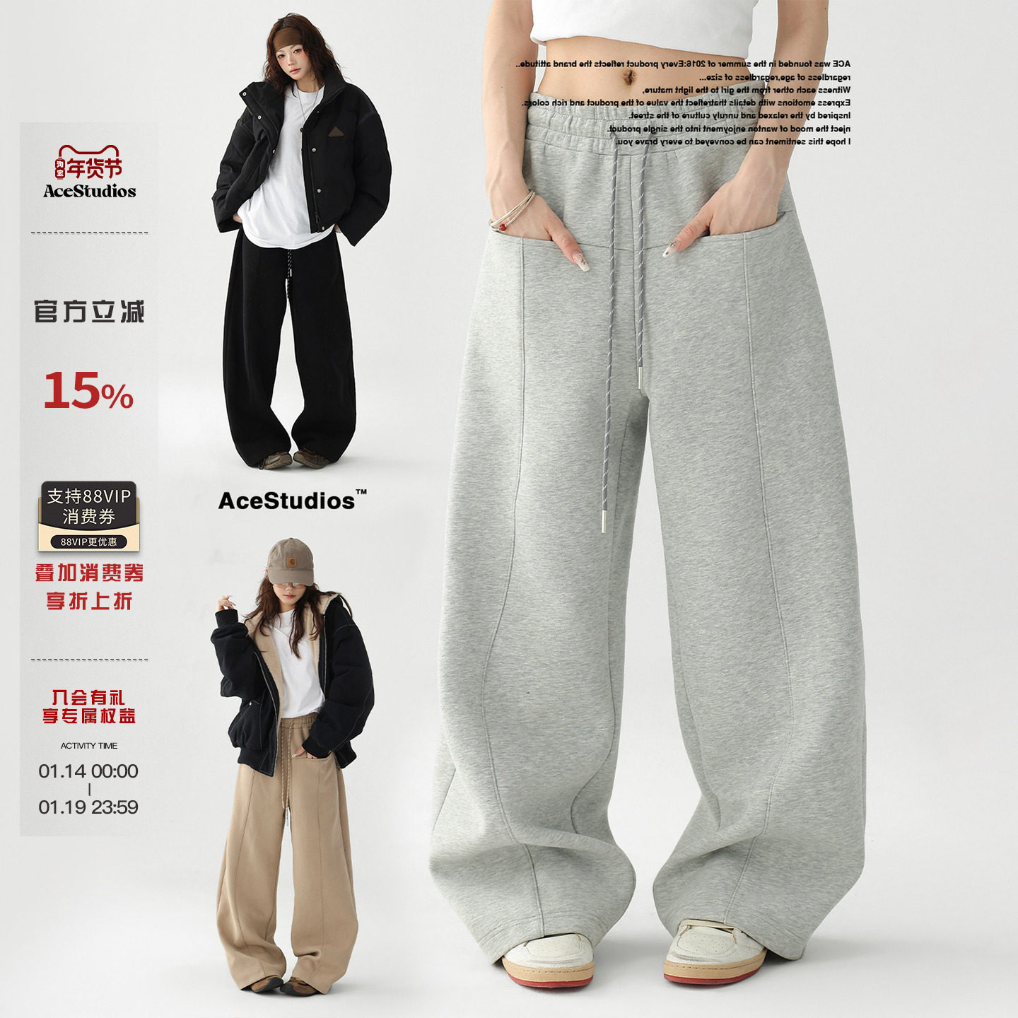 Spring and autumn high-waisted drape, versatile straight-leg sweatpants, loose wide-leg versatile, casual American high street sports floor-length pants, women