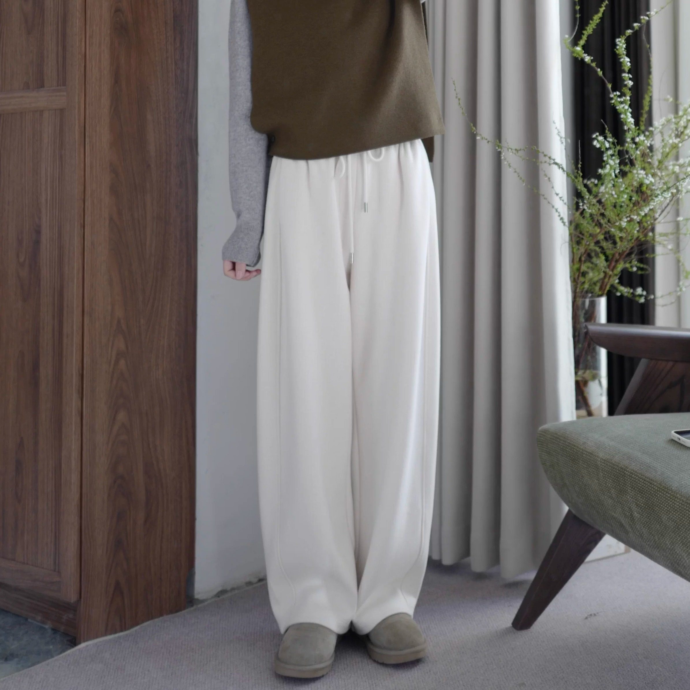 pusumede, drawstring legs, knitted sweatpants, women's fleece straight-leg slacks, loose wide-leg trousers