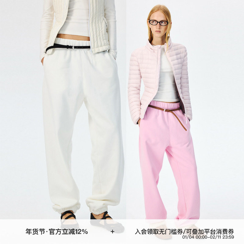 White and gray American sweatpants women's autumn/winter 2025 new high-waisted small loose slimming plush casual sweatpants