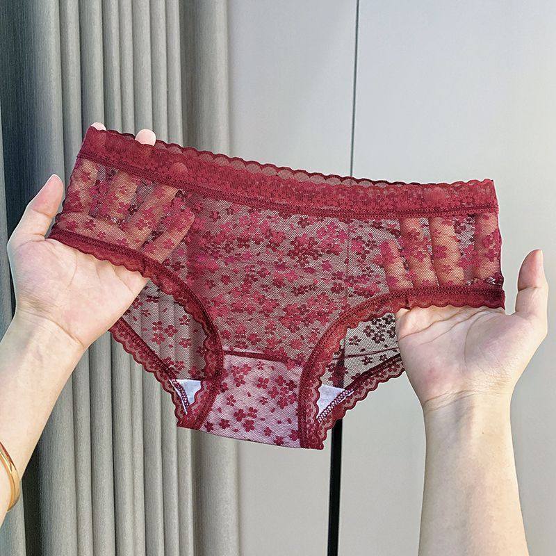 Sexy strap-on lace edge royal sister style panties women's mesh comfortable padded crotch girl briefs women