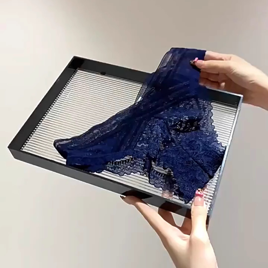 Sapphire blue is so high-end! Rose-like hollow design ingenuity ~ mysterious elegance ~ cross lace triangle panties