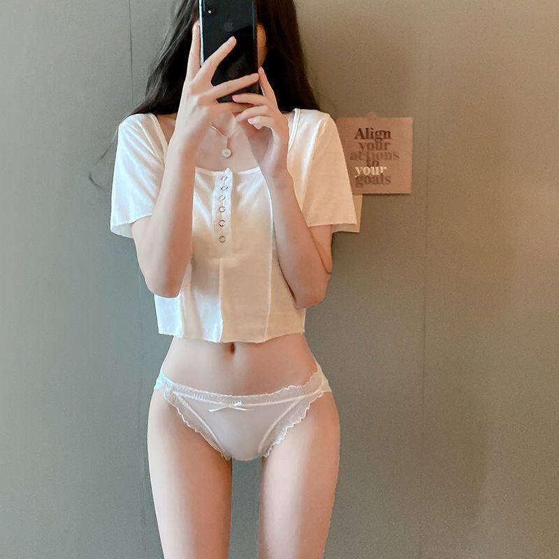 Flawless underwear, feminine low-waisted mask, ultra-thin non-sensitive ice silk one-piece girl raw triangle pure padded crotch underwear