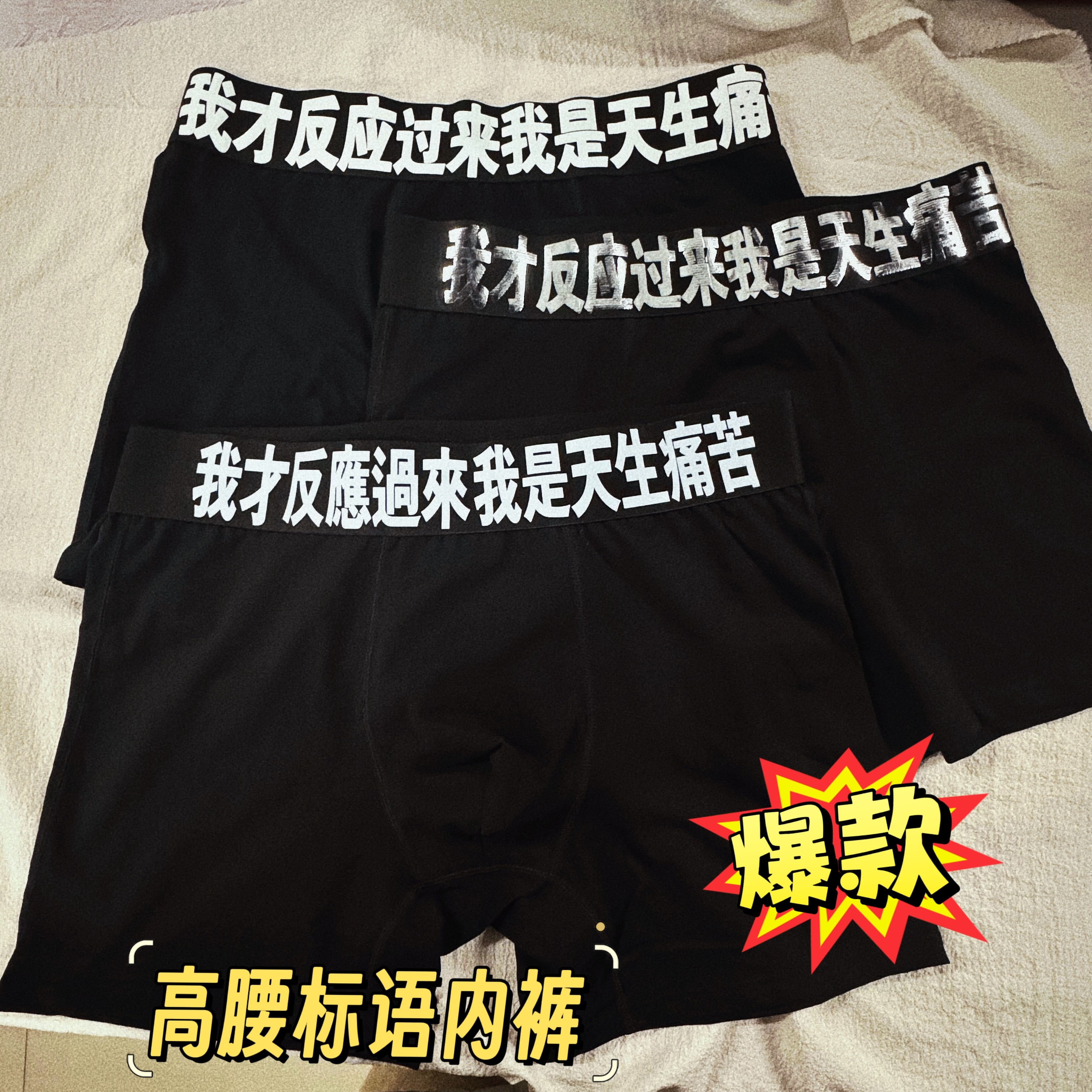 Explosive models, I just reacted to the natural pain, text, underwear, personality slogans, high-waisted boxers, trendy men's and women's styles