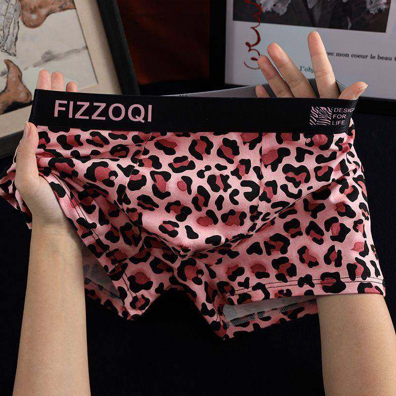 Leopard print men's underwear cotton breathable and comfortable four-corner trend boys' sexy boxer shorts personalized pants pants waistband