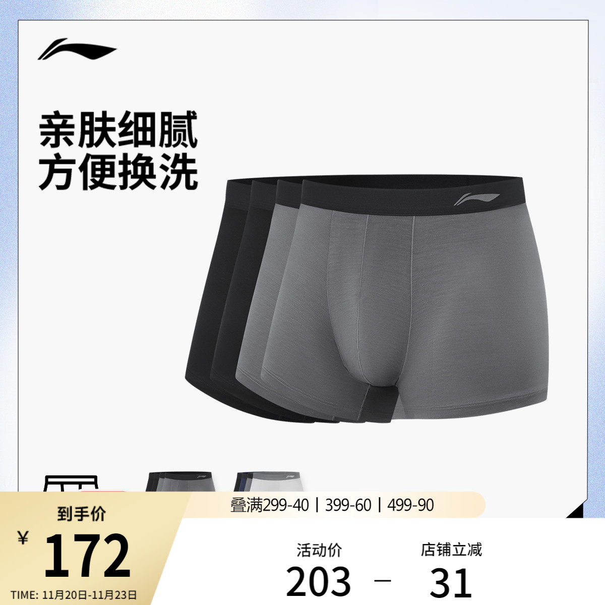 Li Ning Sports Panties Men's Modal Cotton Pure Antibacterial Breathable Teen Running Boxers Marathon