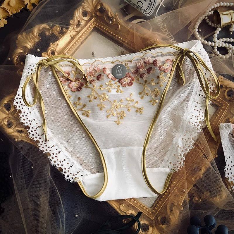 Sexy strap-on lace edge royal sister style panties women's mesh comfortable padded crotch girl briefs women