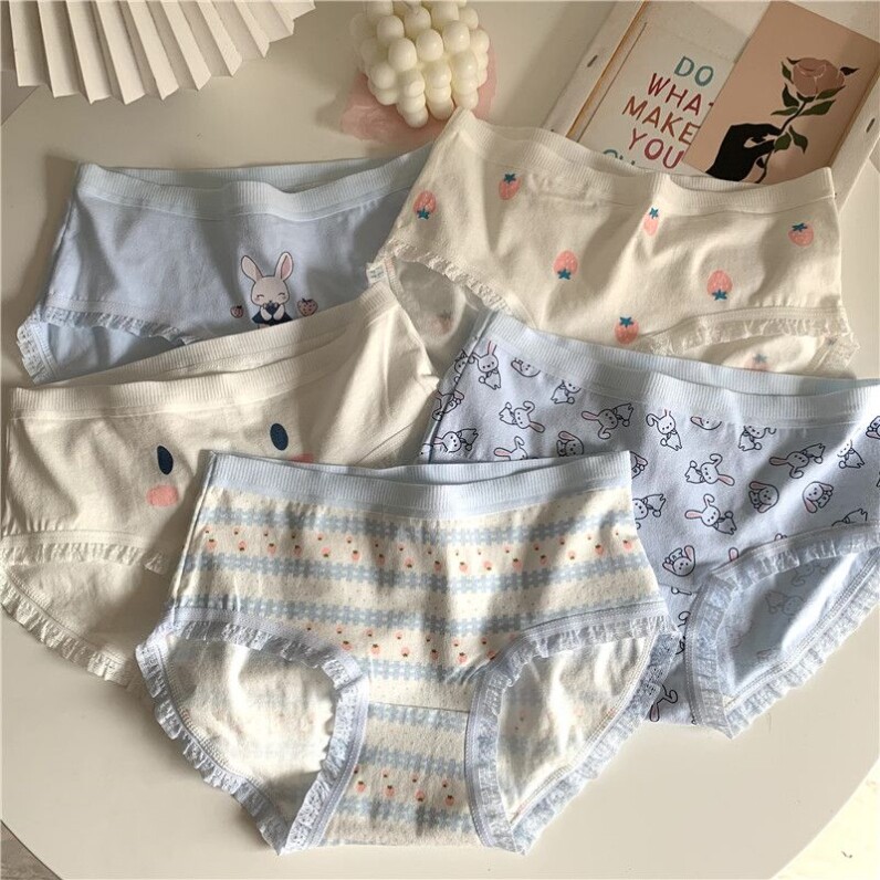 Five pairs of cotton panties, women's Japanese sweet and cute girls, seamless briefs, mid-rise antibacterial student shorts