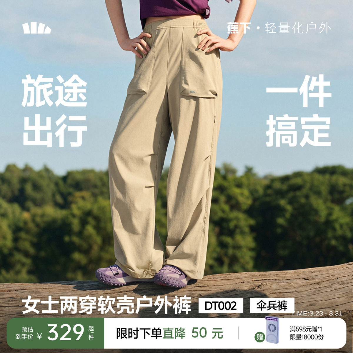 Jiaoxia two jacket pants, women's new spring adjustable length outdoor hiking wear-resistant breathable sunscreen paratrooper pants