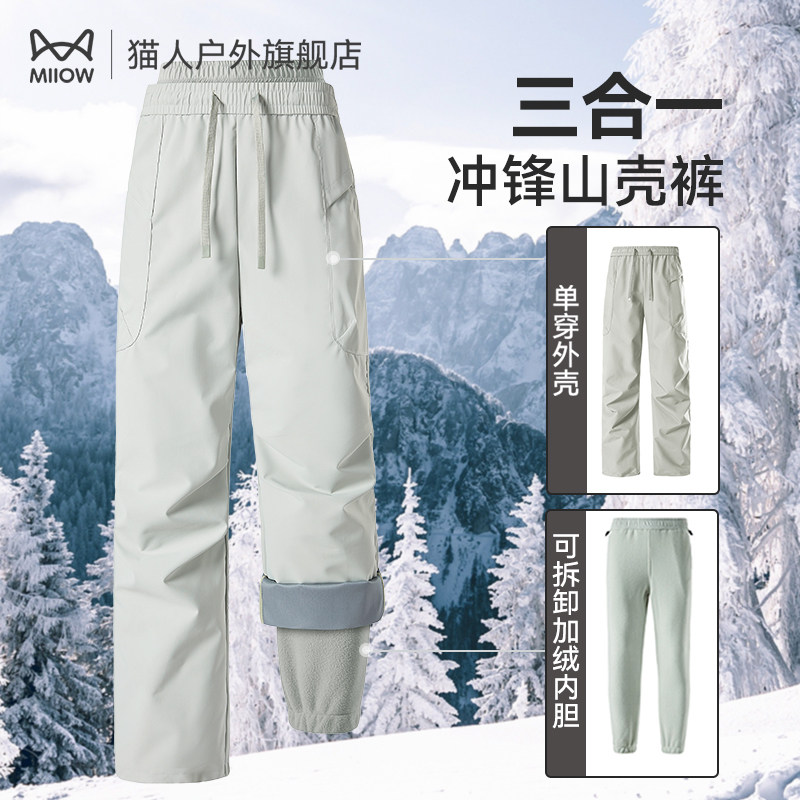 Cat man charge down pants men's and women's outdoor Northeast Harbin cold and warm windproof pants 3-in-1 ski pants