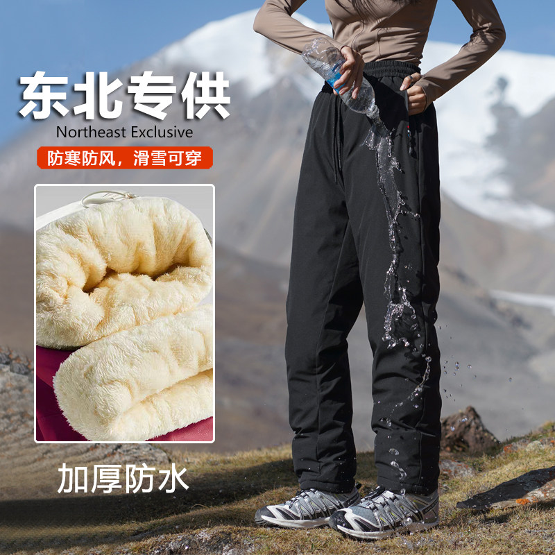 Cotton pants, women, winter fleece, thickened waterproof and windproof skiing, Northeast Harbin, cold protection equipment, charging pants, men