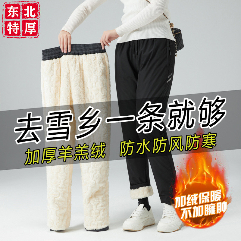 Warm cotton pants for women, fleece in winter, thickened waterproof and windproof, wear minus 40 degrees in the northeast, extreme cold charge pants, men