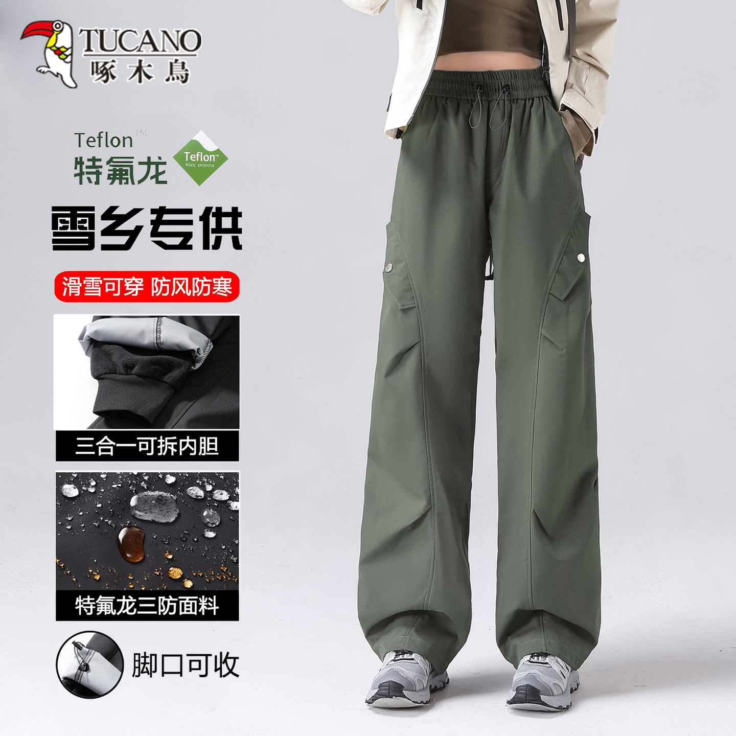 Northeast Harbin 3-in-1 assault pants women's 2026 new winter fleece thickened coldproof waterproof ski pants for men