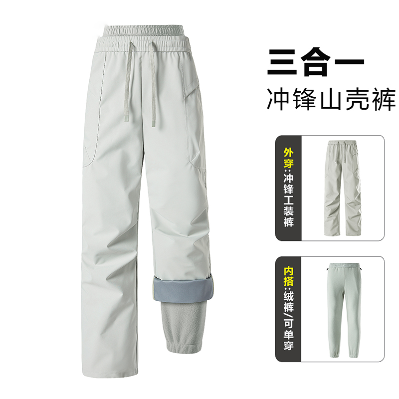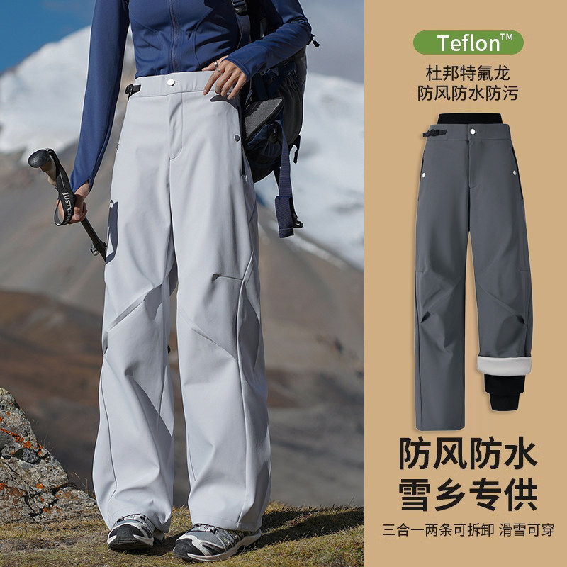 Rock climbing diary men's and women's waterproof assault pants three-in-one autumn and winter Harbin snow town cold-proof fleece warm ski pants