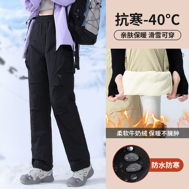 Warm cotton pants for women, fleece thickened in winter, windproof and waterproof and cold-proof ski charge pants for men at minus 40 degrees in the northeast