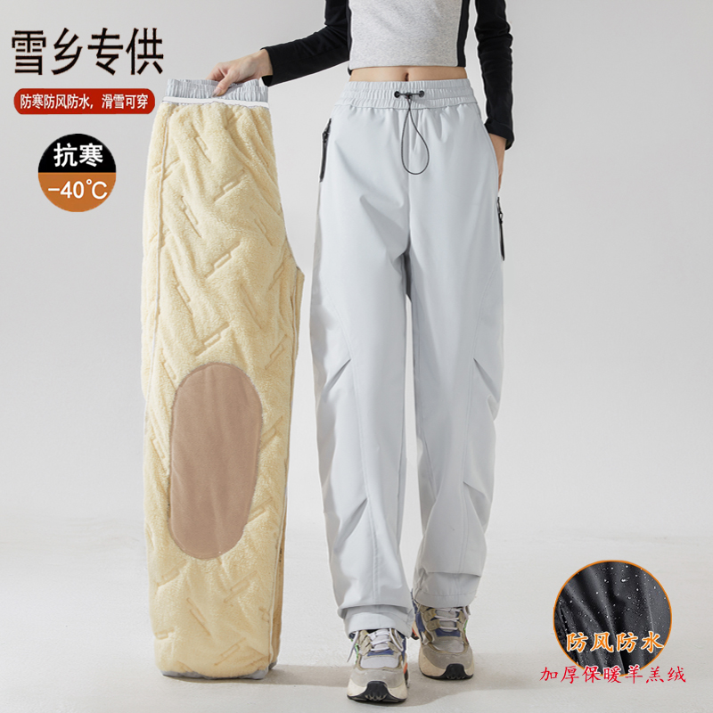 Northeast warm cotton pants for men with fleece in winter and thickened lambswool pants for women who are waterproof and windproof and cold-proof ski assault pants