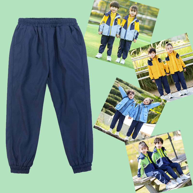 Charging pants, children's waterproof pants, spring and autumn winter clothes, kindergarten school uniforms, boys' windproof pants, navy blue