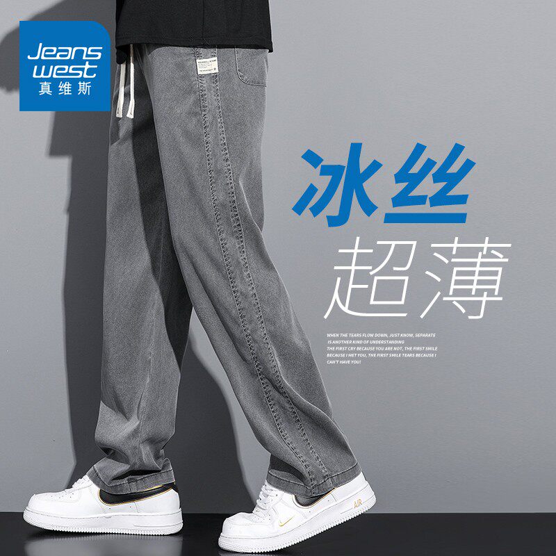 Zhenwei summer jeans men's ice silk thin loose straight casual trousers men's high-end washed pants men