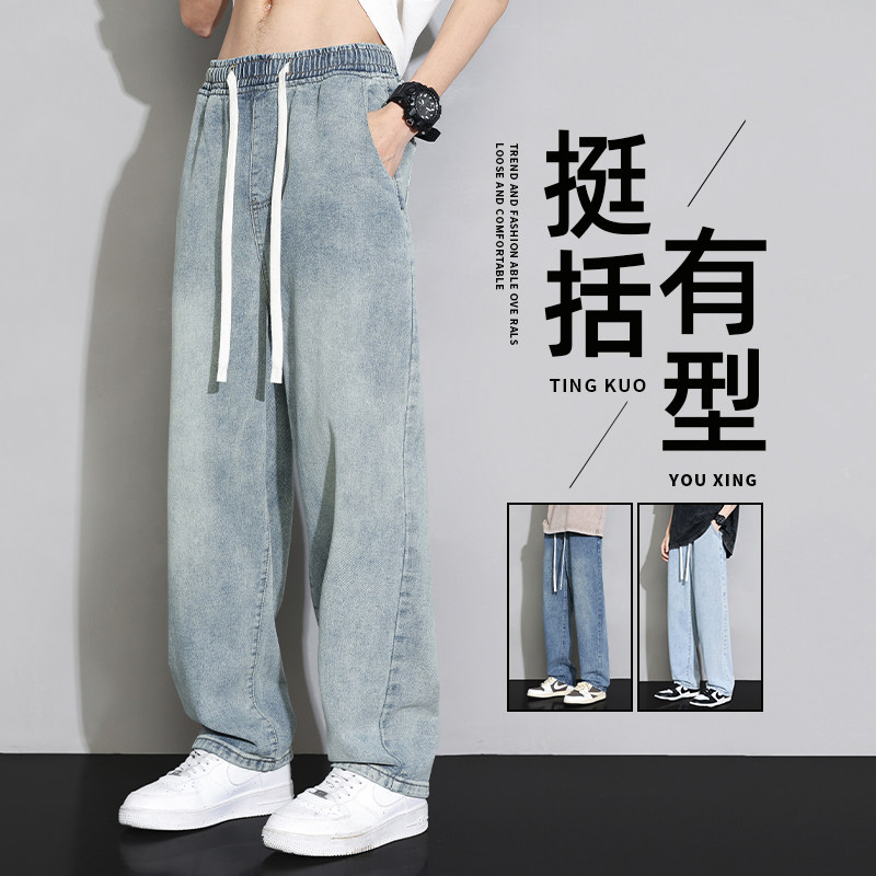 Jeans Men's Summer Thin 2026 New Trendy Boys Loose Straight Elastic Waist Casual Long Pants Men's