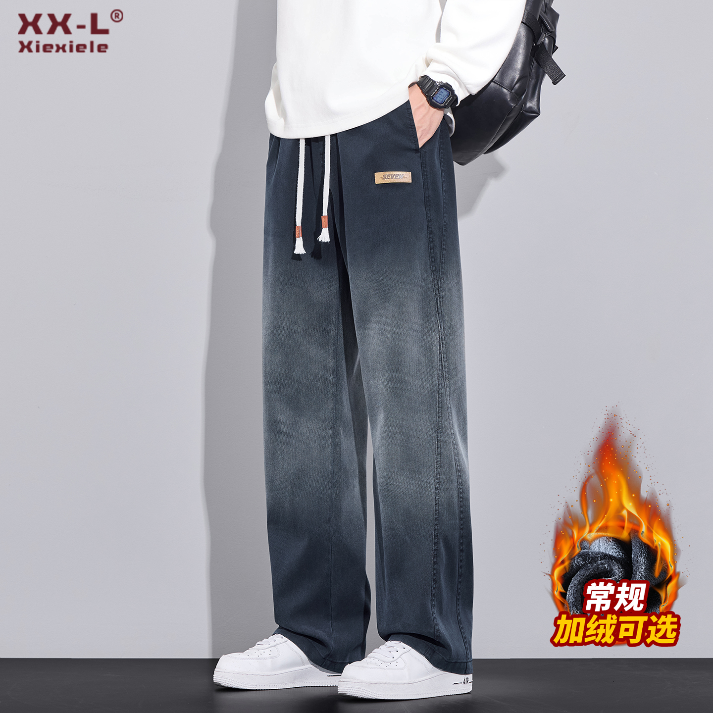 Jeans Men's 2025 Fall/Winter New Starry Sky Pattern Gradient Straight Loose American Trendy Brand Fleece Casual Pants
