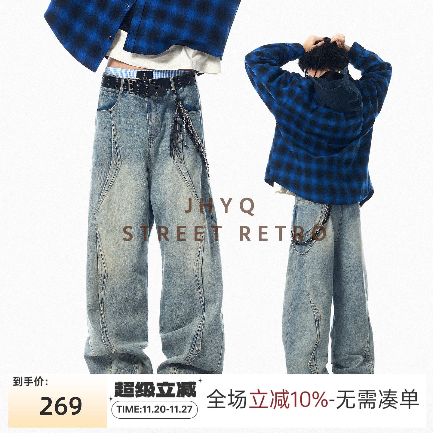 JHYQ purifying eyeballs, American casual deconstructed design, studded cargo jeans, men's trendy brand, high street loose trousers