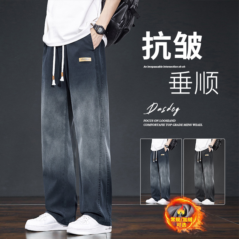 WOODSOON men's jeans fall and winter high street straight pants wide-leg teen casual drape pants men