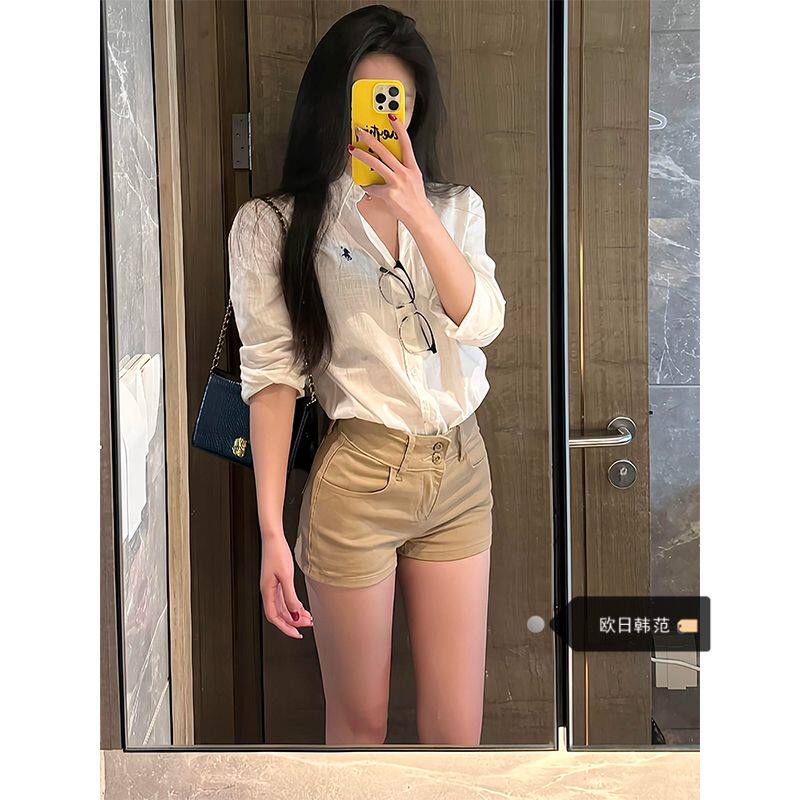 Plus-size American coffee color high-end crotch denim shorts women's 2026 summer new high-waisted slim-fitting hip-hugging hot pants
