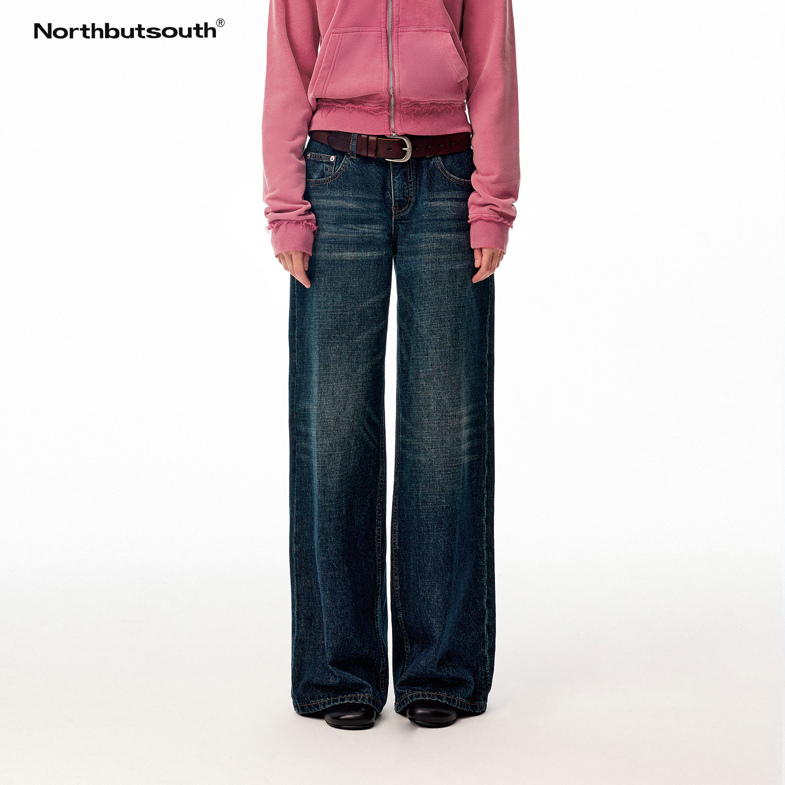 Northbutsouth No.02 Dark Blue Bamboo Texture Vintage Low-Rise Straight-Leg Casual Jeans