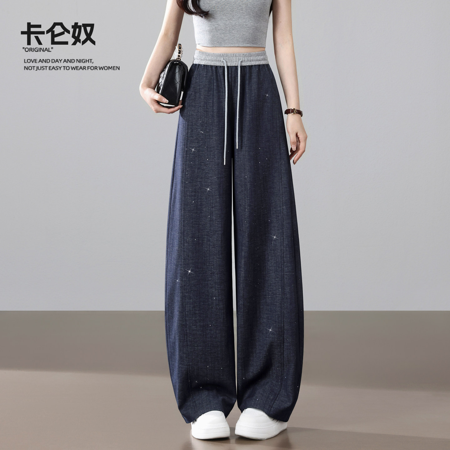 Paris popping pants ~ gypsophila hot diamond jeans women's American retro loose slim wide-leg straight pants